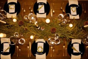 Et, en plus des mets et des vins (vin blanc, vin rouge, cuvée spéciale, ou champagne) sans oublier une éventuelle animation de soirée, il faut penser à la déco (fleurs, déco de Noël, sapin, etc.).