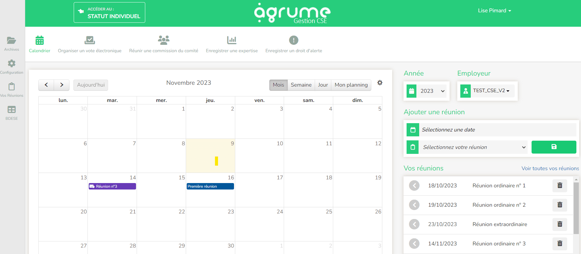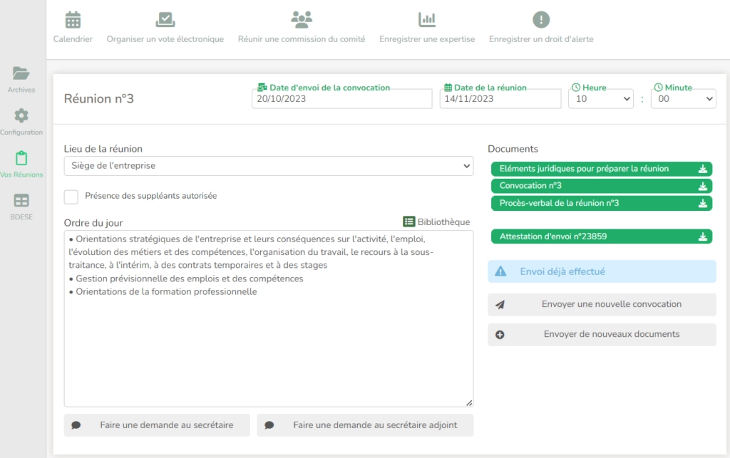 Another advantage of Agrume (CSE) is its ability to simplify and make more efficient the organization of meetings. The software’s functionalities enable you to easily plan and coordinate ordinary and extraordinary CSE meetings. This ease of use helps to optimize the time of CSE members, while guaranteeing compliance with legal consultation obligations.