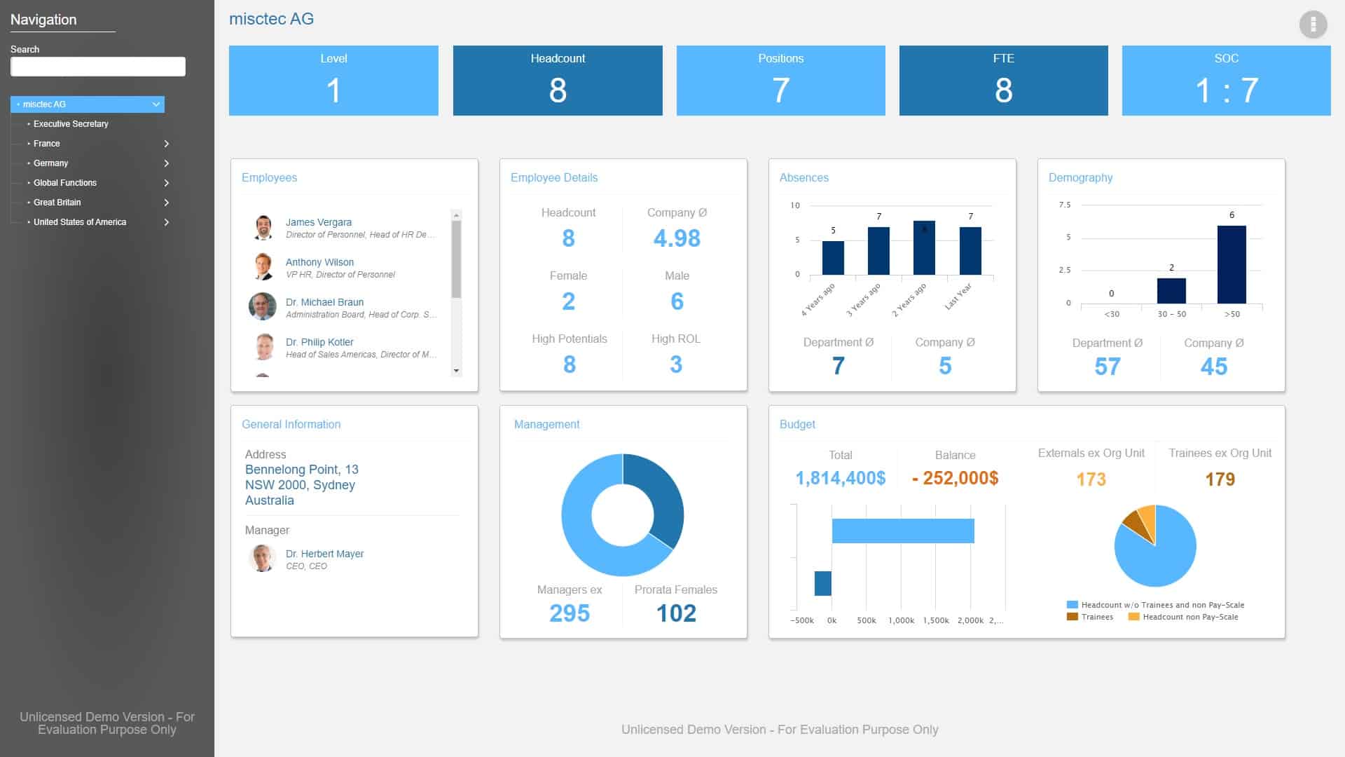 - People Analytics: Charts and diagrams help you track the progress of your business.