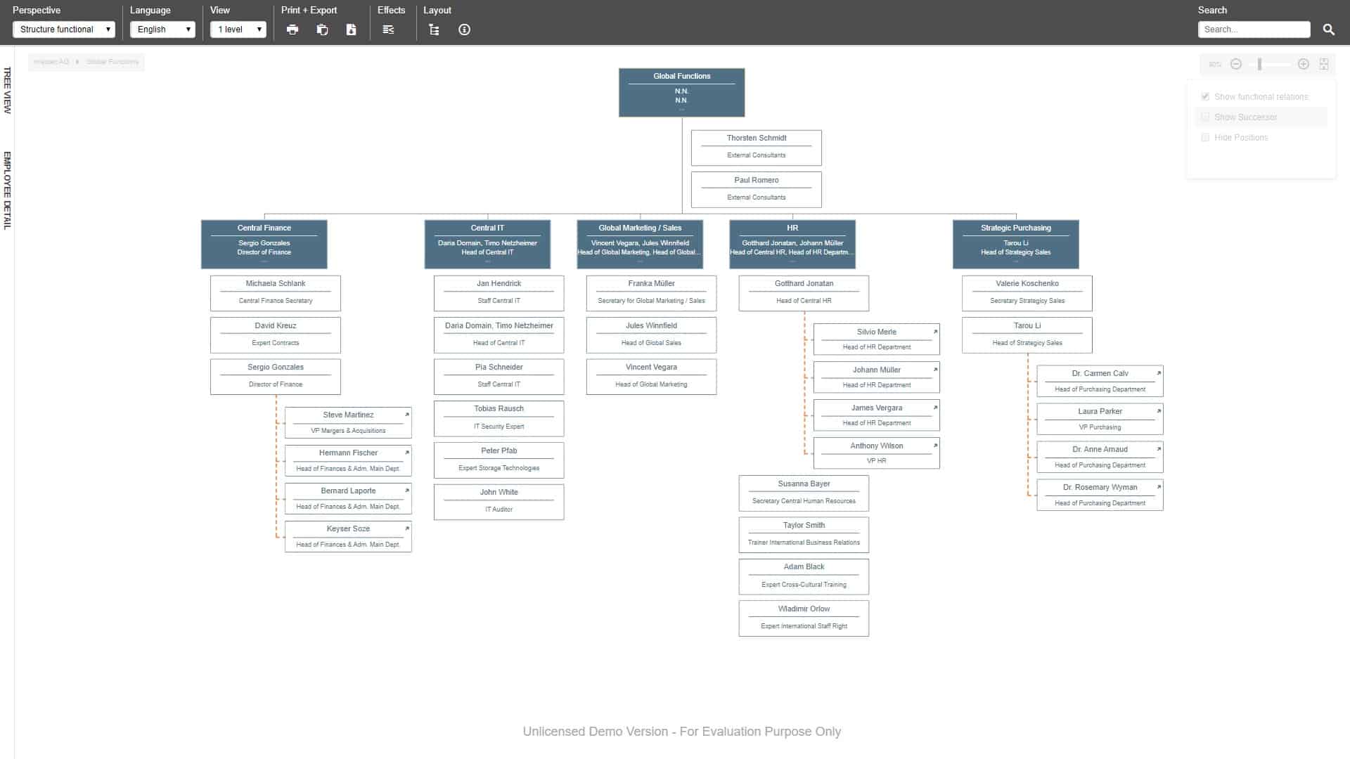 Data stored in PeopleSpheres can automatically be displayed in different forms with Ingentis org.manager. Outdated data visualizations are consequently a problem of the past. This does not only save customers lots of time and manual effort but also enables them to make business decisions based on facts and figures rather than a gut feeling.