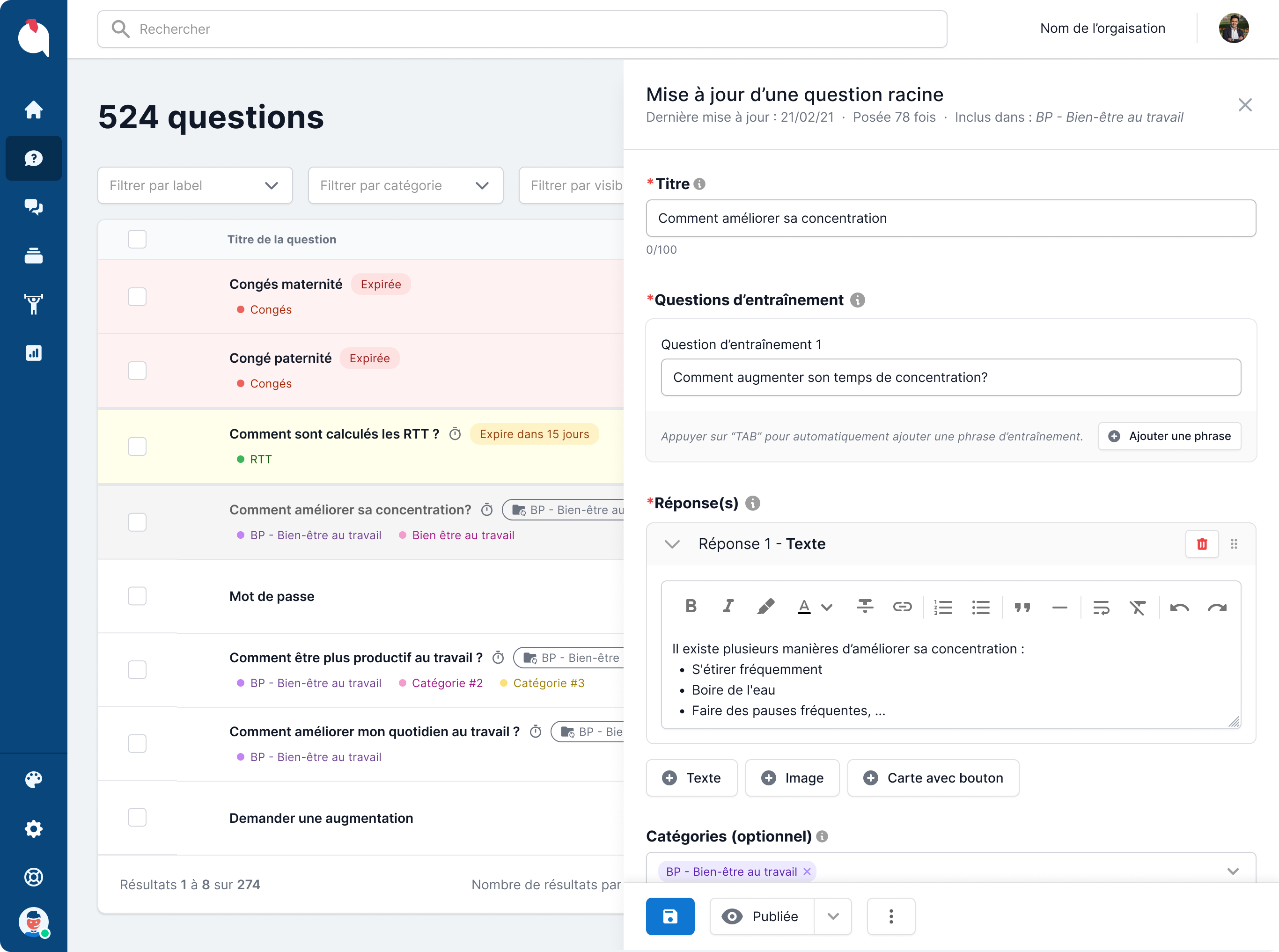 Le Petit Martin’s teams will support you in the initial construction of your database, enabling you to deploy the functions you wish to assign to it with complete peace of mind. You are then free to configure the expertise you integrate into it. These knowledge bases, connected and secure, are shared in real time within your organization to improve the circulation of information.