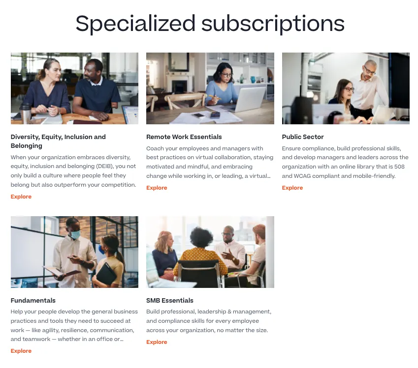 The service is designed to help businesses and individuals keep pace with the latest learning management trends, best practices, and industry-specific knowledge. It offers a broad range of courses on various topics, including leadership, communication, compliance, data analysis, and project management. The platform also features a comprehensive library of on-demand videos, articles, and podcasts, providing every learner with a diverse range of content formats to suit their preferences and learning styles.