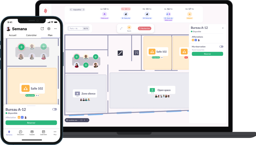 Who is where? Who comes when? Where do we settle? While the generalization of teleworking is often associated with flex-office, the organization of work is changing and companies must adapt to this new mode of operation. Semana is a space and schedule management solution that facilitates hybrid working policies while simplifying collaboration and visibility. Semana integrates with key tools: HRIS, Google, Microsoft, Slack, Teams…