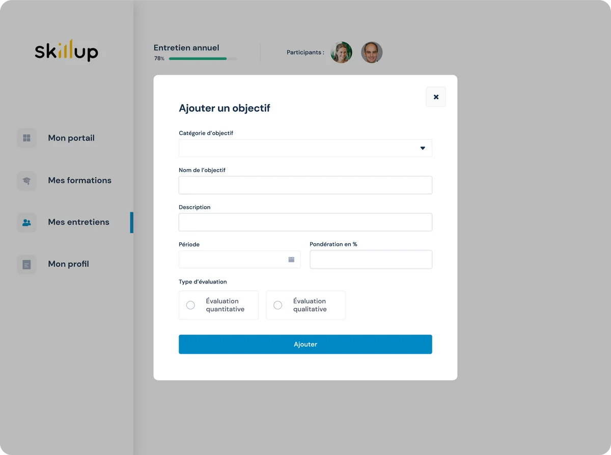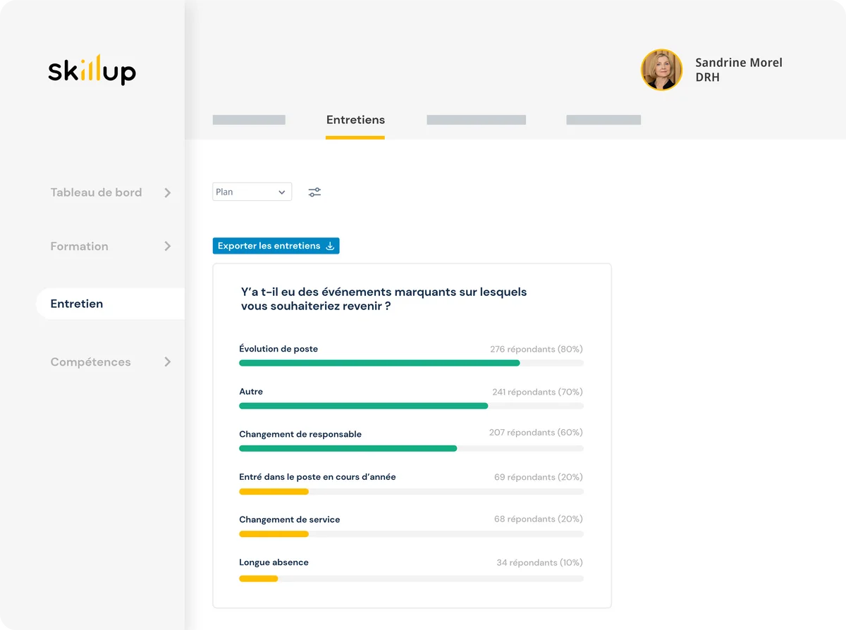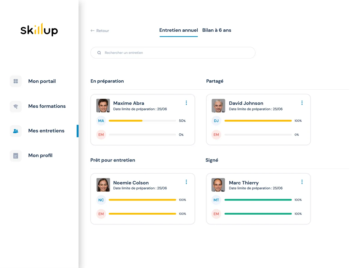 Skillup Entretiens recréer du lien entre vos équipes RH, vos collaborateurs et vos managers. Vous pouvez dorénavant gérer vos entretiens professionnels de manière simple et développer des échanges enrichissants au sein de votre entreprise.