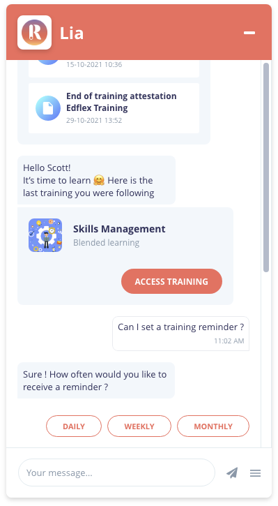 - Un coach virtuel « LIA » qui s’occupe de l’onboarding