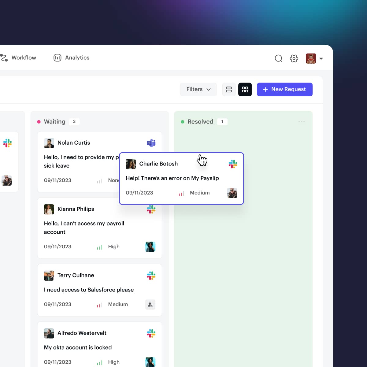 Email, Slack, Teams, et plus encore, capturez les demandes de toutes les sources, du courrier électronique aux plateformes de messagerie modernes.