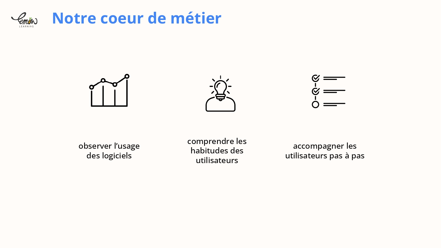 3 – Réduisez les demandes support sur PeopleSpheres grâce à un accompagnement disponible 24/7. La magie de Lemon Learning ? Sa simplicité. Les collaborateurs ont une prise en main quasi immédiate de PeopleSpheres. Résultat : vos équipes support consacrent moins de temps aux demandes support de niveau 1 et 2.