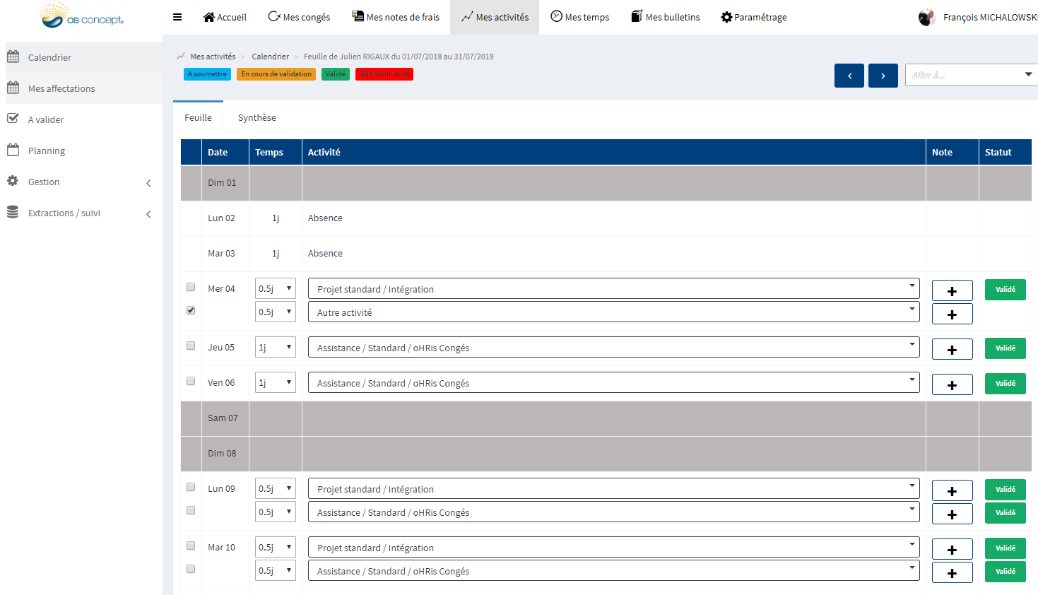 oHRis (Suivi des activités)