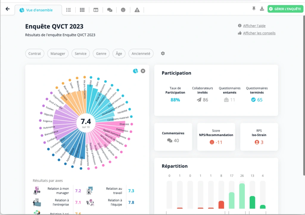 Echelle, QCM, commentaire libre…Obtenez ainsi des résultats détaillés qui vont permettre de mettre en place des plans d’actions concrets.